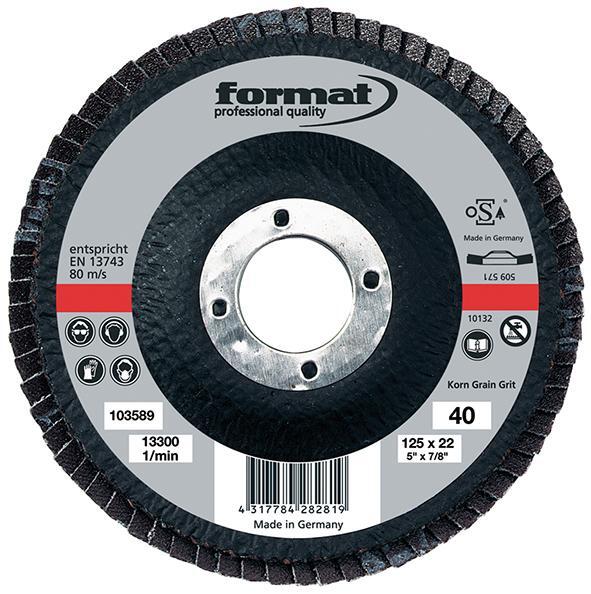 Lamelový brusný kotúč, Standard, Ø 180 mm, vypuklý o 6° Vyhotovenie: Zirkon-korundové lamely (ZA). Agresívne vyhotovenie, vysoko pevné usadenie pryskyřicovým pojivom na 6° vypuklom tanieri zo sklotextilu. Bez obsahu železa, síry a chlóru v pojive. Normovaný otvor 22,23 mm. Použitie: Vhodný na brúsenie hrán a plôch a tiež na zarovnávanie zvarov. Výrobca: Einkaufsbüro Deutscher Eisenhändler GmbH, EDE Platz 1, 42389 Wuppertal, DE, +4920260960, webkontakt@ede.de