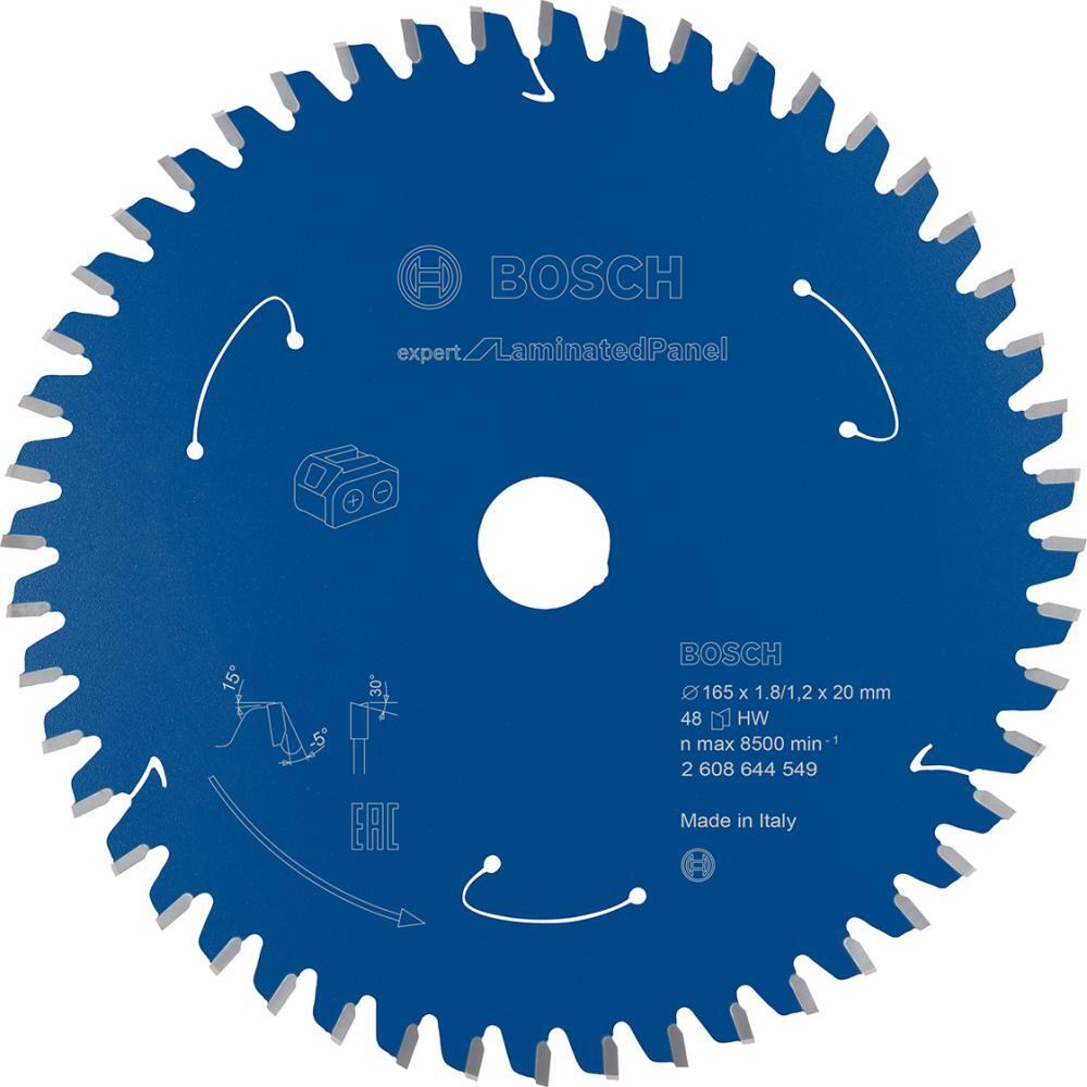HW zoznam pre kotúčovú pílu Expert na laminované dosky Optimalizované pre použitie s akumulátorovými strojmi. Pre veľmi jemné, úzke rezy v surových, dyhovaných alebo laminovaných drevotrieskových doskách, akustických paneloch a paneloch potiahnutých na jednej alebo oboch stranách. Výrobca: Bosch GmbH, Max-Lang-Strasse 40-46, 70771 Leinfelden-Echterdingen, DE, +49 711 400 40990, kontakt@bosch.de