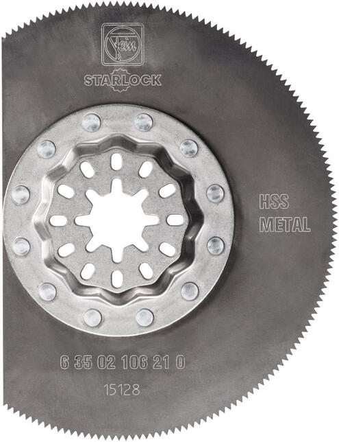 Segmentový pilový kotúč Provedenie: Segmentové, na prácu v rohoch a na okrajoch bez preřezu. Použitie: Na frézovanie drážok a vyrezávanie spár. HSS. Na plasty, GRP, drevo, tmel, farebné kovy a plech do cca 1 mm. Čistá, tenká línia rezu. Výrobca: C. & E. Fein Service GmbH, Hans-Fein-Str.81, 73529 Schwäbisch Gmünd-Bargau, DE, +497173183467, info@fein.de