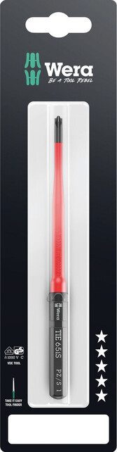 Čepeľ:Zúžený priemer čepele s integrovanou ochrannou izoláciou, tak je možné dosiahnuť na hlboko uložené šróby PlusMinus a manipulovať s nimi, kusová skúška podľa normy IEC 60900