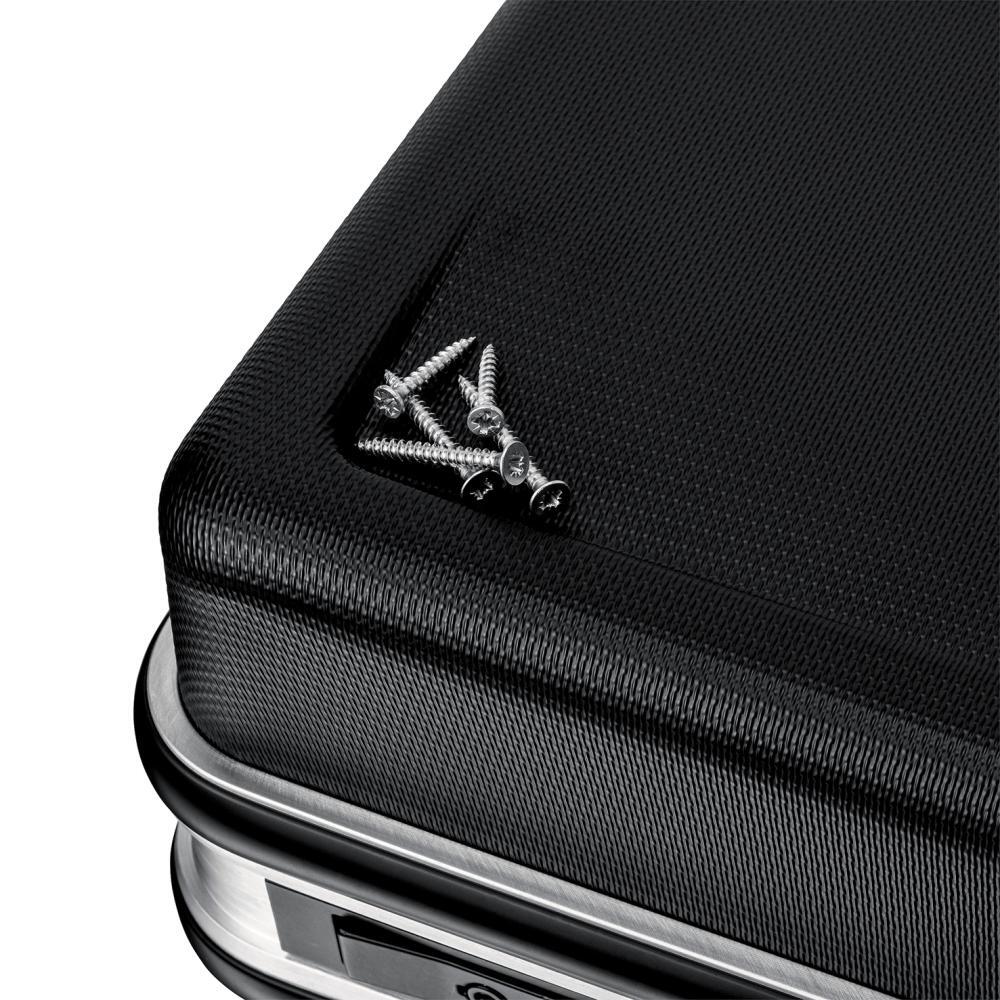 Pouzdro na náradie Basic Provedenie: Z plastu ABS odolného proti opotrebovaniu, odolného proti vlhkosti, čierne, s pevným doskami na náradie zo špeciálneho plastu pre odolnosť proti poškriabaniu, tvarovú stabilitu a odolnosť proti vlhkosti, tukom a chemikáliám a so stabilnou rukoväťou. Škrupina dna s výškou 50 mm, voľne rozdeliteľná. S pozinkovanými kovovými kĺbovými pántmi, kufor zaťažiteľný do 15 kg, obvodový rám z hliníka. Veľmi stabilný, s klzné lištami. Popisovací štítok so dvoma nálepkami pre individuálne označenie. Zamykateľná na 2 klopné cylindrické zámky a 3-miestny kódový zámok. Vybavenie: 21 zástrčnými priehradkami na 2-strannej tabuli pre náradie 13 zástrčnými priehradkami na krycej doske 1 škrupinou dna s krycou doskou 1 priehradkou na dokumenty na malej doske na nástroje na veku 7 pútok na malej doske na nástroje na veku Výrobca: KNIPEX-Werk C. Gustav Putsch KG, Oberkamper Str. 13, 42349 Wuppertal, DE, +4920247940, info@knipex.de