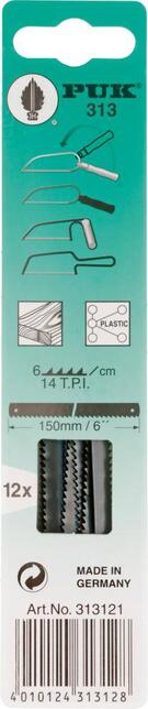 Pilový list pre univerzálnu pílu, hrubšie ozubenie, zošikmené Provedenie: Z pásovej, špeciálne kalenej ocele a kolíky na zavesenie. Dĺžka 150 mm, hrúbka 0,4 mm. Hrubšie ozubenie, zošikmené Pre jednoduché rezanie do dreva, latových preglejok, drevotrieskových dosiek, drevovláknitých dosiek, ako aj do zeleného dreva, lepenky, tvrdej tkaniny a mäkkých platov. Výrobca: Josef Haunstetter Sägenfabrik KG, Im Tal 6, 86179 Augsburg, DE, +49821888871, info@haunstetter-saegenfabrik.de