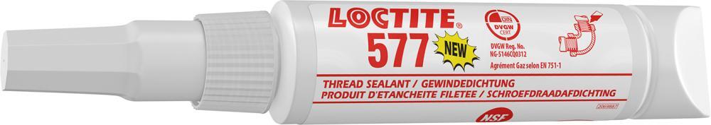 Tesnenie závitov LOCTITE® 577 Provedenie: Stredne silné tesnenie pre závity rúriek. Použitie: Univerzálne použiteľné tesnenie závitov pre všetky bežné kovové závity a hrubé závity do 80 mm (3"). Obzvlášť pre rýchle spracovanie pri nízkych teplotách, napr. pre údržbové práce v exteriéri. Dosiahne sa okamžité utiahnutie pri nízkom tlaku. S povolením DVGW a WRC. Výrobca: Henkel AG & Co. KGaA, Henkel-Teroson-Str.57, 69123 Heidelberg, DE, +4962217040, corporate.communications@henkel.com