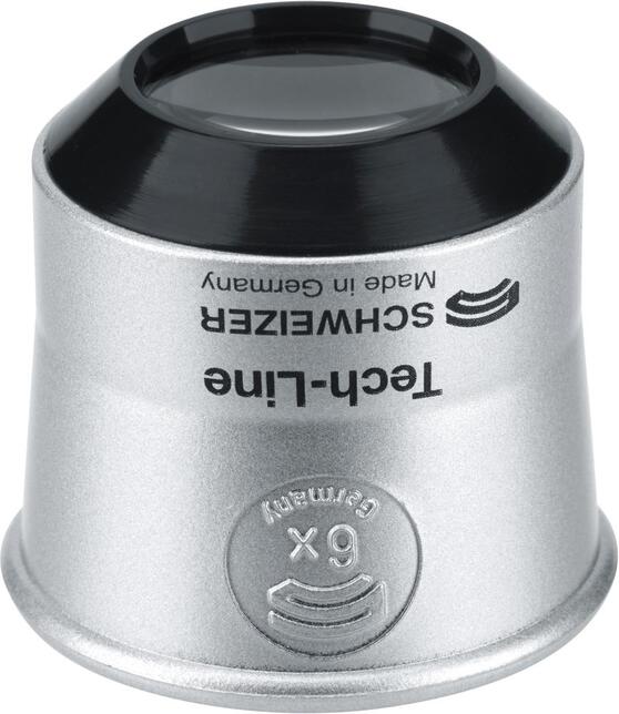 Hodinárska lupa Tech-Line Provedenie: Čočka zo silikátu, aplanatický systém čočiek pre nezakreslené zorné pole. Pouzdro zo špeciálneho 2zložkového laku, odolnosť proti potu z rúk, mnohým chemikáliám a riedidlám. Zamedzuje oroseniu zvnútra vďaka priechodným otvorom v puzdre. Výrobca: A. Schweizer GmbH, Hans-Böckler-Str. 7, 91301 Forchheim, DE, +49919172100, info@schweizer-optik.de