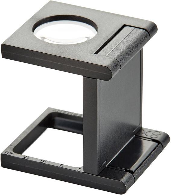 Lupa na počítanie a meranie vlákien v textíliách Vyhotovenie: S bočnou milimetrovou stupnicou. Plošná konvexná nízkohmotnostná PXM® šošovka, s odolnosťou proti rozbitiu, antistatická, s povrchovou úpravou DUPLEX pre ostré zorné pole aj na okrajoch a bez skreslenia obrazu. Zariadenie z čierneho plastu. Výrobca: Eschenbach Optik GmbH, Fürther Str. 252, 90429 Nürnberg, DE, +4991136000, mail@eschenbach-optik.de