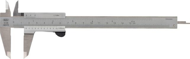Posuvné meradlo s hranatým hĺbkomerom Vyhotovenie: Z kalenej ocele. Nonius a stupnica lišty matne chrómované, hlavná stupnica mierne zapustená kvôli ochrane proti opotrebovaniu, tabuľka závitov na zadnej strane. Použitie: Na meranie vnútorných, vonkajších, hĺbkových a stupňovitých rozmerov. Výrobca: Mahr GmbH, Carl-Mahr-Str. 1, 37073 Göttingen, DE, +49 551 7073 0, info@mahr.com