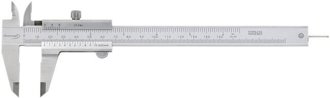 Posuvné meradlo s guľatým hĺbkomerom Vyhotovenie: Z INOX ocele, tvrdené, stupnica a nonius matne chrómované. Tabuľka závitov na zadnej strane. Použitie: Na meranie vnútorných, vonkajších, hĺbkových a stupňovitých rozmerov. Výrobca: Einkaufsbüro Deutscher Eisenhändler GmbH, EDE Platz 1, 42389 Wuppertal, DE, +4920260960, webkontakt@ede.de