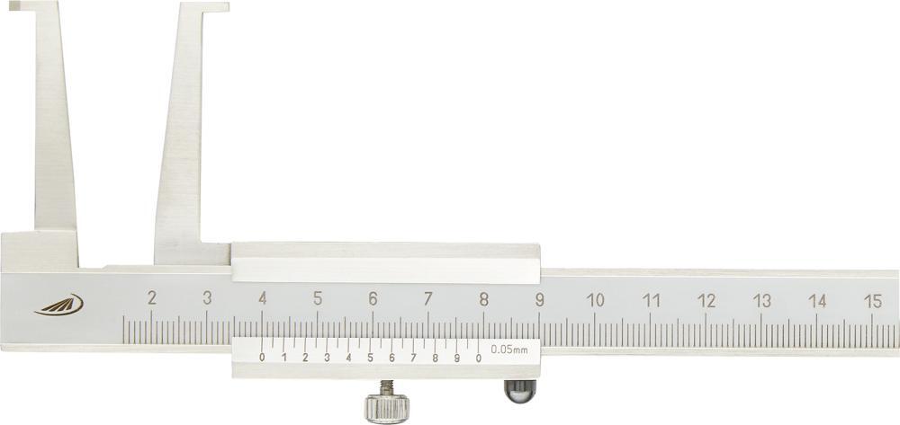 Posuvné meradlo na meranie drážok pre poistné krúžky Vyhotovenie: Z kalenej INOX ocele. Nonius matne chrómaný, s aretačným skrutkou. Hlavná stupnica je mierne zapustená kvôli ochrane pred opotrebovaním. Nonius a odčítacia stupnica sú vysoko presne laserovo označené. Použitie: Na meranie priemeru závitov a vpichov, napr. u vnútorných zaisťovacích krúžkov. Výrobca: Mahr GmbH, Carl-Mahr-Str. 1, 37073 Göttingen, DE, +49 551 7073 0, info@mahr.com