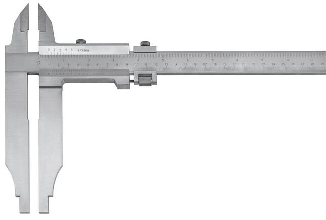 Dielenské posuvné meradlo s meracími hrotmi, s jemným nastavením Vyhotovenie: Z kalenej ocele, stupnica a nonius matne chrómované, s aretačným skrutkou. Použitie: Na meranie vnútorných a vonkajších rozmerov. S meracími hrotmi. Výrobca: Einkaufsbüro Deutscher Eisenhändler GmbH, EDE Platz 1, 42389 Wuppertal, DE, +4920260960, webkontakt@ede.de