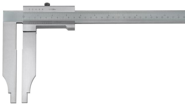 Dielenské posuvné meradlo s dlhými meracími čeľusťami Vyhotovenie: Z kalenej ocele, stupnica a nonius matne chrómované, s aretačným skrutkou. Použitie: Na meranie vnútorných a vonkajších rozmerov. Výrobca: Einkaufsbüro Deutscher Eisenhändler GmbH, EDE Platz 1, 42389 Wuppertal, DE, +4920260960, webkontakt@ede.de