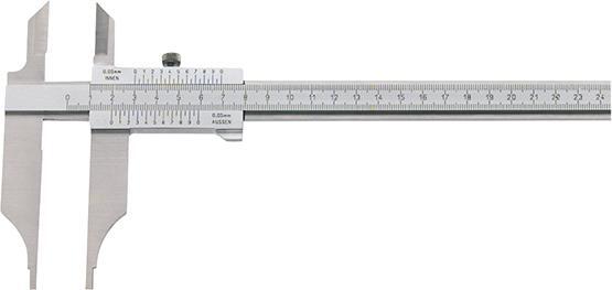 Dielenské posuvné meradlo, odčítanie bez paralaxnej chyby Vyhotovenie: Z kalenej ocele, stupnica a nonius matne chrómované a vysoko presne laserovo označené, s meracími hrotmi a aretačným skrutkou. Použitie: Na meranie vnútorných a vonkajších rozmerov. Výrobca: Einkaufsbüro Deutscher Eisenhändler GmbH, EDE Platz 1, 42389 Wuppertal, DE, +4920260960, webkontakt@ede.de