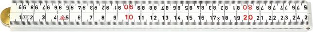 Plastový skládací meter Provedenie: Z ABS plastu, farba biela, čierne razená stupnica v mm na hornej a spodnej hrane článkov. Kĺby a konce z mosadze. Výrobca: Hultafors Group Germany GmbH, Luisenstraße, 32052 Herford, DE, +4952289570, info@hultaforsgroup.de