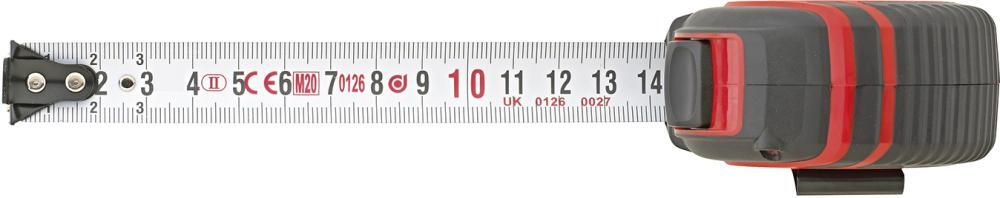 Vreckový sťahovací meter s magnetom na počiatočnom kovaní Vyhotovenie: Z klenutej a tvrdenej pružinovej ocele s duplexnou stupnicou v mm, vo vysoko odolnom puzdre z ABS plastu. Povrchová úprava pásma čírym lakom za účelom ochrany proti opotrebovaniu. Automatické navíjanie stlačením tlačidla Stop, pohyblivé kovanie na začiatku pásu pre vonkajšie a vnútorné meranie. Výrobca: Einkaufsbüro Deutscher Eisenhändler GmbH, EDE Platz 1, 42389 Wuppertal, DE, +4920260960, webkontakt@ede.de