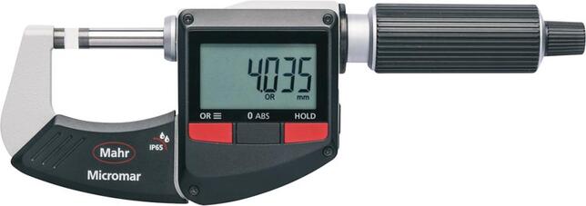 Digitálny mikrometr, IP65 Vyhotovenie: Vreteno z nehrdzavejúcej ocele, tvrdené a brúsené, lakovaný oceľový držiak, ráčna vytiahnutá dopredu, rýchlopohon a termická izolácia na ruke. Výška číslic na LCD displeji 8,5 mm, stupeň krytia IP65. Dodanie s batériou CR2032. Funkcie: Zapnutie a automatické vypnutie, prepínanie mm/palce, automatické zapnutie otočením meracieho tlačidla, blokácia tlačidla pre nastavenú nulovú polohu, po zapnutí nie je potrebné znovu nastavovať nulu (absolútny systém), ABS (prepínanie z relatívneho na absolútne meranie), reset (vynulovanie) je možné aktivovať v každej pozícii, funkcia prednastavenia (rozsah meracích hodnôt). Výrobca: Mahr GmbH, Carl-Mahr-Str. 1, 37073 Göttingen, DE, +49 551 7073 0, info@mahr.com