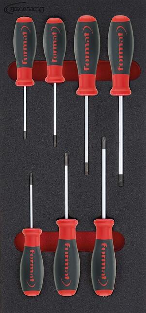 Nástrojový modul šroubováky TORX®, 7 kusov, modul 1/3 Provedenie: 2farebná penová vložka, tak bude možné okamžite rozpoznať, že nejaké nástroje chýbajú. 1/9 modul = 188 x 132 mm 2/9 modul = 188 x 264 mm 1/3 modul = 188 x 395 mm 2/3 modul = 376,5 x 395 mm 3/3 modul = 565 x 395 mm Sada šroubovákov TORX®, 7 ks, 7 šroubovákov s dvousložkovou plastovou rukoväťou pre vnútorné TORX® T 8; 9; 10; 15; 20; 25; 30 Výrobca: Einkaufsbüro Deutscher Eisenhändler GmbH, EDE Platz 1, 42389 Wuppertal, DE, +4920260960, webkontakt@ede.de