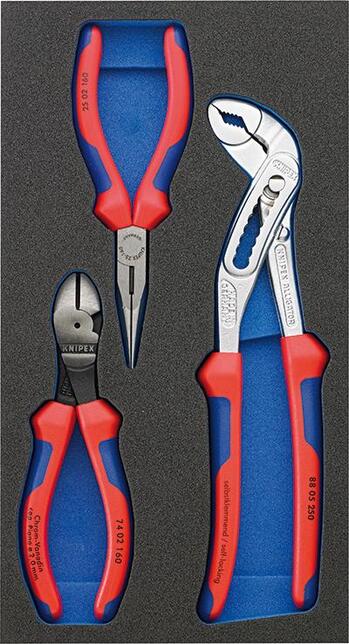 Nástrojový modul kliešte, 3-dielny, modul 1/3 Provedenie: 2farebná penová vložka, tak bude možné okamžite rozpoznať, že nejaké nástroje chýbajú. 1/3 modul = 172 x 348 mm 2/3 modul = 344 x 348 mm 3/3 modul = 519 x 348 mm Upozornenie: Hodí sa pre dielenské vozíky Hazet a pre pojazdné pracovné stoly Hazet, u modelu 179 s použitím distančného modulu. Sada klieští, 3 ks 1 kliešte na vodné čerpadlá, 250 mm 1 silové bočné štípacie kliešte, 160 mm 1 rádiové kliešte, leštené, 160 mm Výrobca: Einkaufsbüro Deutscher Eisenhändler GmbH, EDE Platz 1, 42389 Wuppertal, DE, +4920260960, webkontakt@ede.de