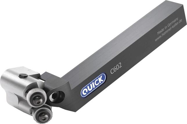 Rádlovací frézovací nástroj C602, bez frézovacího kolečka Provedení: Držák zo zušľachtenej ocele. Vysoká stabilita v mieste rezu. Snadné nastavenie hlavy nástroja. Snadné nastavenie na jemno rádlovacieho držáku. Dodáva sa bez rádlovacieho frézovacieho kolečka. Použitie: Na rádlovacie frézovanie (trieskové obrábanie). Pre veľmi stiesnené konštrukčné priestory pri maximálnej stabilite. Pre najmenšie rozmery rádlovaného dielca. Možnosť použitia na pozdĺžne rádlovanie. Nástroj na rádlovanie možno navyše použiť na obrobky podľa DIN 82: RGE 30° a RGE 45°. Profil na obrobku: RGE 30° –2 x AA RGE 45° –1 x BL 15° + 1 x BR 15° Typ stroja: Dlhotočné automaty a malé sústruhy (CNC aj klasické), horná hrana stopky integrovaná do držáku nástroja. Výrobca: Hommel+Keller Präzisionswerkzeuge GmbH, Nagelsee 6, 78554 Aldingen, DE, +49742497050, info@hommel-keller.de
