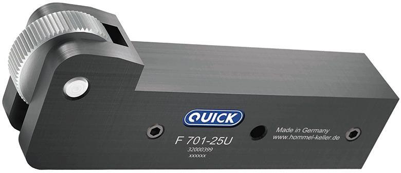 Rádlovací tvářecí nástroj F701, bez rádlovacího kolečka Provedení: Držák zo zušľachtenej ocele. Pevne stanovená výška hrotov. Maximálna stabilita, pretože nástroj je z jedného kusu. Nepatrná dĺžka prečnieľkov, pretože bez rezného miesta, nevznikne žiadne viditeľné rozhranie. Dodávame bez rádlovacieho kolečka. Použitie: K rádlovaniu tvárením. Je možné rádlovať všetky profily. Je možné nastaviť axiálnu súbežnosť. Nie je potrebné prenastavenie na iný nástroj. Profil na obrobku: RBR 30° –1 x BL 30° RBL 30° –1 x BR 30° RBR 45° –1 x BL 45° RBL 45° –1 x BR 45° RAA –1 x AA Typ stroja: Automatické sústruhy s axiálnym posuvom dielca a malé sústruhy - CNC a klasické. Výrobca: Hommel+Keller Präzisionswerkzeuge GmbH, Nagelsee 6, 78554 Aldingen, DE, +49742497050, info@hommel-keller.de