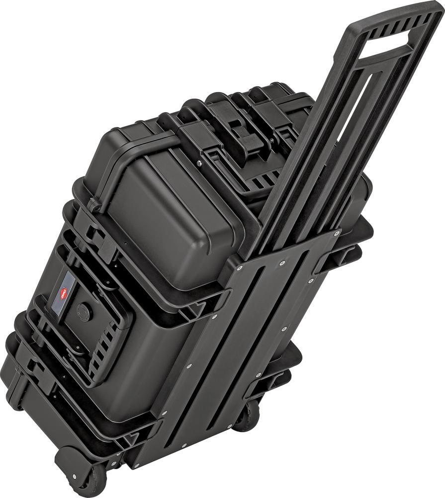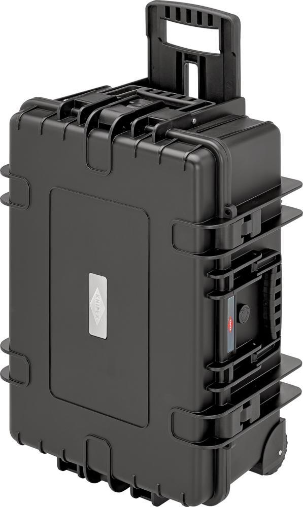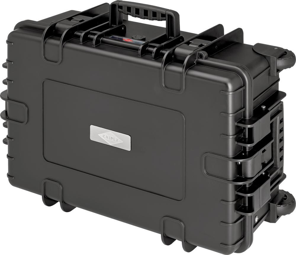 Kufor na náradie Robust45 Move Prevedenie: Z odolného polypropylénu, čierny, nerozbitný a nárazuvzdorný, prachotesný a vodotesný a tepelne odolný od –30°C do +80°C. Zatváranie vzduchotesné s ventilom pre vyrovnanie tlaku. S pevným doskami na náradie a stabilnou viaczložkovou stabilnou rukoväťou na nosenie, so zaskakujúcou, ergonomickou teleskopickou rukoväťou a veľkými, ľahko sa pohybujúcimi transportnými kolieskami. Výška škrupiny dna 236 mm. S plynovými vzperami pre jednoduché otváranie a zatváranie. Kufor zaťažiteľný až do 35 kg. Veľmi stabilný, stohovateľný a odolný. Zamykateľný na 4 poklopové uzávěry a visací zámok (nie je súčasťou dodávky). Model vhodný na prepravu lietadlom. Vybavenie: 147 zasúvacích priehradkami na doske pre náradie Výrobca: KNIPEX-Werk C. Gustav Putsch KG, Oberkamper Str. 13, 42349 Wuppertal, DE, +4920247940, info@knipex.de
