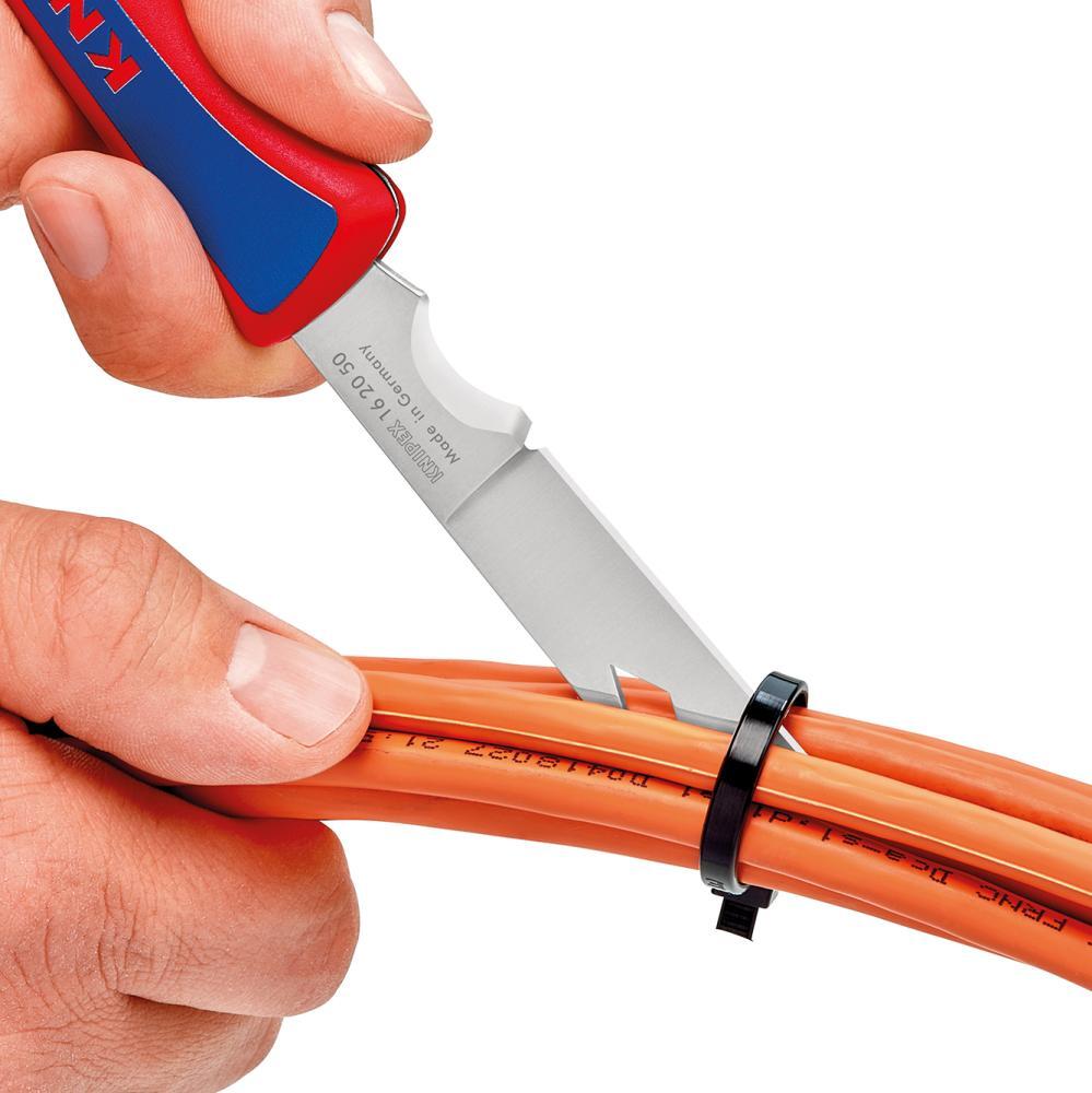 Elektrikársky zavírací nôž Provedenie: Sklápacia čepeľ so zárezom z nerezovej ocele, s plastovou rukoväťou. Výrobca: KNIPEX-Werk C. Gustav Putsch KG, Oberkamper Str. 13, 42349 Wuppertal, DE, +4920247940, info@knipex.de