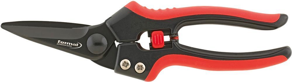 Kombinované nožnice s plastovými rukoväťami Provedenie: Čepele z nekorozívnej nerezovej ocele. Levořezný. Dolné ostrie je zubaté, horné hladké. S pružinou pre samočinné roztvorenie a závorou, dorazy s gumovými vložkami tlmiacimi nárazy. Rukoväte z hliníka s mäkkými vložkami, ktoré chránia ruky. Použitie: Na strihanie papiera, lepenky, látky, jemného plechu, kože, povrazu atď. Výrobca: Einkaufsbüro Deutscher Eisenhändler GmbH, EDE Platz 1, 42389 Wuppertal, DE, +4920260960, webkontakt@ede.de