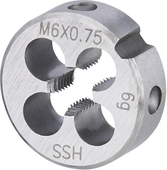 Závitové očko na metrické jemné závity Provedenie: Rozsah tolerancie 6g, uzavreté, predom vyrezaný tvar, leštené s narezaním pre lúpanie na oboch stranách. Použitie: Pre metrické jemné závity podľa DIN 13. HSS. Výrobca: Einkaufsbüro Deutscher Eisenhändler GmbH, EDE Platz 1, 42389 Wuppertal, DE, +4920260960, webkontakt@ede.de