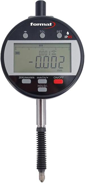 Digitálny úchylkomer s batériou, IP65 Vyhotovenie: Upínacia stopka a merací čap sú tvrdené, brúsené a z INOX ocele. Výška číslic LCD ukazovateľa 11 mm, ovládacia a zobrazovacia časť sa dá otáčať o 270 °, grafový ukazovateľ. S dátovým výstupom cez Bluetooth®. Prenos meraných hodnôt manuálnym stlačením tlačidla alebo automaticky (nastaviteľná rýchlosť). S výmenným snímacím hrotom M2,5. Upínacia stopka Ø 8 mm, ochranný uzáver na konci meracieho čapu. S lítiovou batériou 3,7 V. Dodávame s nabíjacím káblom a softvérom. Funkcie: Automatické zapínanie, prepínanie mm/palce, uzamknutie tlačidiel pre nastavenú nulovú polohu, zadávanie tolerovaných odchýlok, funkcia prepínania +/-, reset (vynulovanie) možné v akejkoľvek polohe, s prepínateľnou stupňovitou číslicovou hodnotou. Výrobca: Einkaufsbüro Deutscher Eisenhändler GmbH, EDE Platz 1, 42389 Wuppertal, DE, +4920260960, webkontakt@ede.de