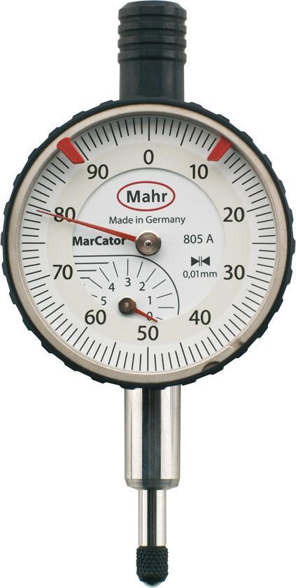 Analógový malý úchylkomer Vyhotovenie: Odolné plastové sklo, merací čap a upínacia stopka (Ø 8 m h6) sú z odolnej nerezovej ocele, merací čap je leštený. Chrómovaný kryt, zdvíhacia krytka s ochranou proti prachu na konci meracieho čapu, kolieska a pastorky s precíznym ozubením. Výrobca: Mahr GmbH, Carl-Mahr-Str. 1, 37073 Göttingen, DE, +49 551 7073 0, info@mahr.com