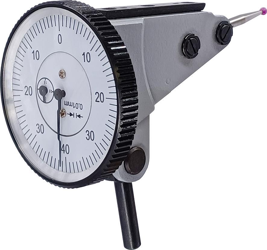 Páčkový úchylkomer, horizontálny/vertikálny Prevedenie: číselník otočný o 270°. Merací nástavec Rubin Ø 2 mm, upínacia stopka (Ø 8 mm h6). Použitie: Na kontrolu obvodu hriadeľov a puzdier, centrovanie priechodných otvorov, vyrovnanie plôch a na kontrolu paralelnosti. Výrobca: Einkaufsbüro Deutscher Eisenhändler GmbH, EDE Platz 1, 42389 Wuppertal, DE, +4920260960, webkontakt@ede.de