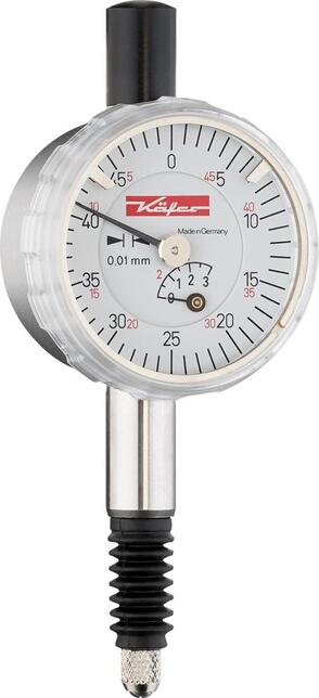 Analógový malý úchylkomer Vyhotovenie: Odolné plastové sklo, merací čap a upínacia stopka (Ø 8 m h6) sú z odolnej nerezovej ocele, merací čap je leštený. Otočný ciferník na vynulovanie, dve nastaviteľné tolerančné značky. * Stupeň krytia IP65 Výrobca: Käfer Meßuhrenfabrik GmbH & Co. KG, Hahnstr. 11, 78054 Villingen-Schwenningen, DE, +49772083410, info@kaefer-messuhren.de