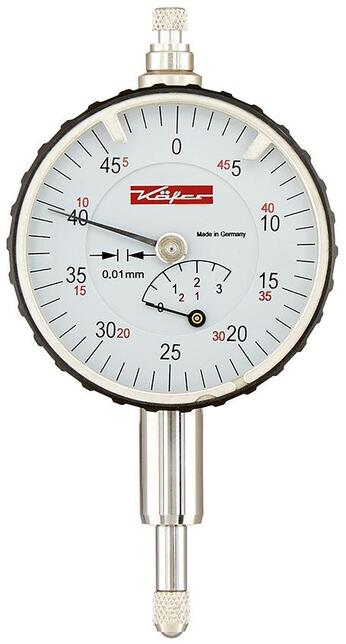 Analógový úchylkomer s prítlačným magnetom Vyhotovenie: Robustný kovový kryt, merací čap a upínacia stopka (Ø 8 mm h6) sú z odolnej nerezovej ocele, merací čap je leštený. Otočný ciferník na vynulovanie, dve nastaviteľné tolerančné značky. So silným magnetom na zadnej strane pre použitie bez stojana a držiaka. Výrobca: Käfer Meßuhrenfabrik GmbH & Co. KG, Hahnstr. 11, 78054 Villingen-Schwenningen, DE, +49772083410, info@kaefer-messuhren.de