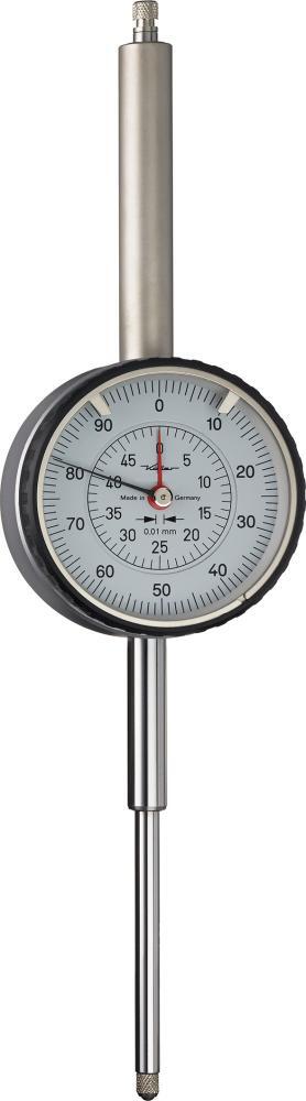 Analógový úchylkomer s veľkým meracím rozsahom Vyhotovenie: merací čap a upínacia stopka (Ø 8 mm h6, pri meracom rozsahu 100 mm Ø 10 mm h6) sú z odolnej nerezovej ocele, merací čap je leštený. Najdôležitejšie časti meracích ústrojí sú uložené v rubínových kameňoch. So stredovo umiestneným ukazovateľom milimetrov. Výrobca: Einkaufsbüro Deutscher Eisenhändler GmbH, EDE Platz 1, 42389 Wuppertal, DE, +4920260960, webkontakt@ede.de