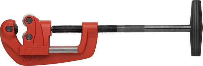 Rezačka rúr pre oceľové rúrky do 2" Vyhotovenie: Oceľové kované telo so saním zo zinkovej tlakovej liatiny, rezací kotúč z vysoko legovanej a kalenej ocele, vymeniteľný bez použitia nástrojov. 2 široké vodidlá pre bezpečné vedenie rezacieho kotúča na rúrke. S pružinovým prítlačným systémom pre vylepšený rez a vyššiu trvanlivosť rezacieho kotúča. Regulácia tlaku sa vykonáva pomocou vŕtania s ľahkým chodom. T-rukoväť pre najvyšší prenos sily. Použitie: Pre čisté a pravouhlé odrezanie oceľových rúr. Po odrezaní je možné ihneď rezať závit. Výrobca: Einkaufsbüro Deutscher Eisenhändler GmbH, EDE Platz 1, 42389 Wuppertal, DE, +4920260960, webkontakt@ede.de