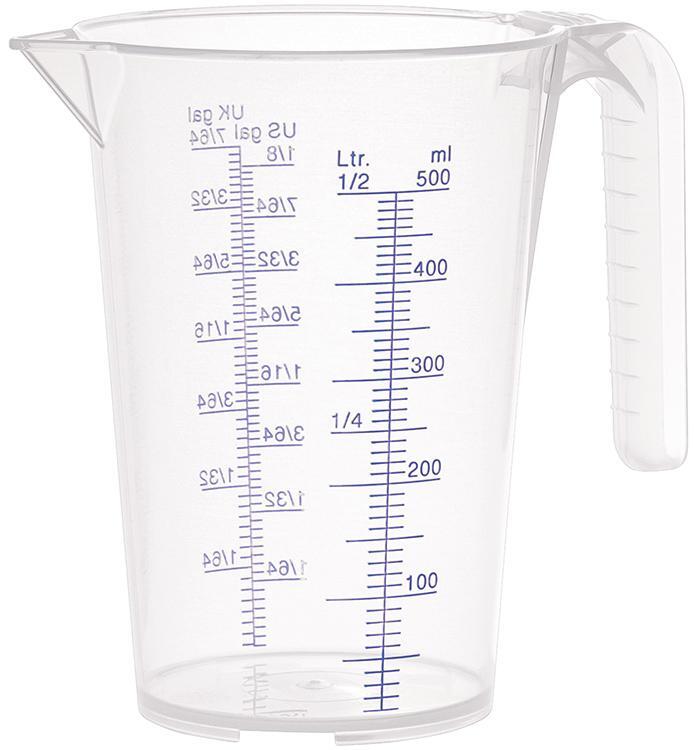 Odmerka, plastová Provedenie: Z polypropylénu, určená pre kontakt s potravinami, priehľadná a s vyvýšenou stupnicou. S vysokým okrajom pre bezpečné vylievanie. Bezpečné pre potraviny podľa (EÚ) 10/2011 a FDA § 21 CFR 177.1520. Použitie: Vhodné pre olejové a kyselinové látky. Výrobca: Pressol Schmiergeräte GmbH, Tiergartenstraße 5, 79423 Heitersheim, DE, +4976659346000, service@pressol.com