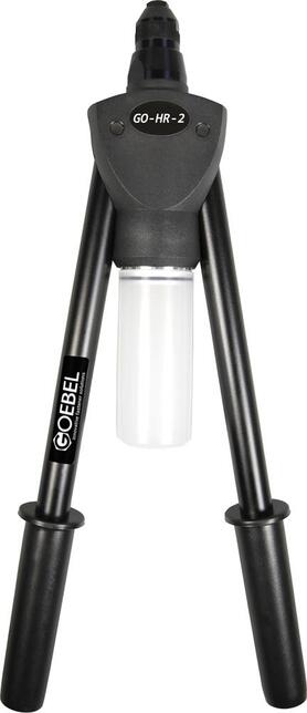 Pákové nýtovacie klešte GO-HR-2 Provedenie: Z vysoko kvalitného tlakovo liateho hliníka, s oceľovými páčkami a krytom z vysoko pevného plastu ABS. Konštrukcia je stabilne chránená proti znečisteniu a optimalizovaná pre profesionálne použitie. Vďaka zabudovanému unikátnemu prenosu sily je znížená silová náročnosť, čo umožňuje jednoduché spracovanie trhacích nýtov. Použitie: Pre trhacie nýty Ø 2,4 až 6,4 mm akéhokoľvek materiálu, vysoko pevné trhacie nýty Ø 4,8 mm akéhokoľvek materiálu Ø 6 až 6,4 hliník a oceľ. Obsah dodávky: pákové nýtovacie klešte GO-HR-2, 4 špičky Ø 3–3,2; 4; 4,8–5; 6–6,4, montážny kľúč. Priřazení špiček: Ø nýtu: 3–3,2; materiál nýtu: hliník, oceľ, nerez Ø nýtu: 4; materiál nýtu: hliník, oceľ, nerez Ø nýtu: 4,8–5; materiál nýtu: hliník, oceľ, nerez Ø nýtu: 6–6,4; materiál nýtu: hliník, oceľ, nerez Výrobca: Goebel GmbH, Mühlenstr., 40699 Erkrath, DE, +492112450000, info@goebel-group.com