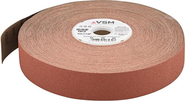 Brusná tkanina v roli KK114F Provedení: Rovnoměrný a mírně otevřený korundový posyp (A) na velmi poddajné (hnědé) tkanině, v pojivu z umělé pryskyřice. Velmi dobrá přilnavost zrn, dlouhá životnost, nízký přítlak a velmi dobrá přizpůsobivost. Délka rolí 50 metrů. Použití: Pro začišťující ruční broušení také vysoce namáhaných plochách, natrhává se ve vláknech bez třepení. Odolné vůči oleji a petroleji. Ideální pro broušení armatur, nádob, litinových a kovaných dílů, dílů karosérií atd. Výrobca: VSM Vereinigte Schmirgel-u. Maschinen-Fabriken AG, Siegmundstr.17, 30165 Hannover, DE, +4951135260, info@vsmag.de