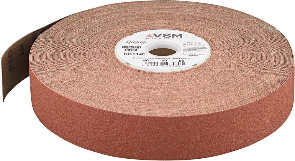 Brusná tkanina v roli KK114F Provedenie: Rovnomerný a mierne otvorený korundový posyp (A) na veľmi poddajnej (hnedej) tkanine, v pojive z umelého živice. Veľmi dobrá priľnavosť zŕn, dlhá životnosť, nízky prítlak a veľmi dobrá prispôsobivosť. Dĺžka rolí 50 metrov. Použitie: Pre začišťujúce ručné brúsenie aj na vysoko namáhaných plochách, natrháva sa vo vláknach bez třepenia. Odolné voči oleju a petroleju. Ideálne pre brúsenie armatúr, nádob, liatinových a kovaných dielov, dielov karosérií atď. Výrobca: VSM Vereinigte Schmirgel-u. Maschinen-Fabriken AG, Siegmundstr.17, 30165 Hannover, DE, +4951135260, info@vsmag.de