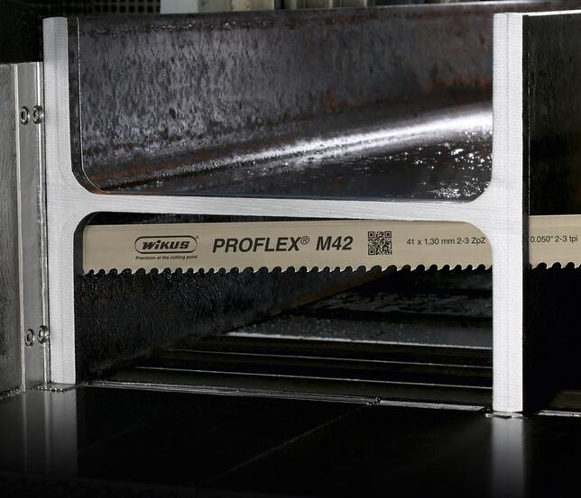 List do pásovej píly, WIKUS PROFLEX® M42 Provedenie: Bimetalový pílový pás so špeciálnou variabilnou geometriou zubov, odolný proti vylamovaniu zubov. Použitie: Na rezanie profilov a nosníkov v kovovýrobe a výrobe oceľových konštrukcií, optimálne na rezanie s prerušeným rezacím kanálom a pre obrobky s tendenciou kmitania. Výrobca: WIKUS-Sägenfabrik Wilhelm H.Kullmann GmbH & Co.KG, Melsunger Str.30, 34286 Spangenberg, DE, +4956635000, info@wikus.de