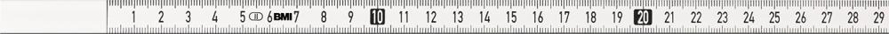 Meračská páska, samolepiaca - Stupnica zľava doprava Vyhotovenie: Biela farba, bez kovania, plošne doliehajúca, nevypuklá. Výrobca: Bayerische Maß-Industrie Arno Keller GmbH, Rosengasse 12, 91217 Hersbruck, DE, +49915173010, info@bmi.de