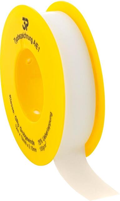 PTFE závitová tesniaca páska Provedenie: Netrhá sa, nenafukuje a nelepí sa. Teplotná odolnosť od –240°C do +260°C, hodnoty sa môžu meniť v závislosti na rôznych médiách a úrovni tlaku. Použitie: Na tesnenie spojov potrubia. S povolením WRC. Výrobca: Westdeutscher Bindegarn-Vertrieb Eselgrimm, Am Landhagen 50, 59302 Oelde, DE, +492522790, info@wbv-worldwide.com