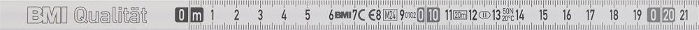 Kapslové svinovacie pásmo z tvrdenej pásovej pružnej ocele, biele lakovanie Vykonanie: Kryt z vysoko odolného plastu proti nárazu, dobrá manipulácia vďaka obojstranným páčkovým klikám, parkovacia pozícia. Stupnica začína 10 cm po počiatočnom kovaní. Začiatok pásma navyše vystužený plastovým opláštením. Pásmo z tvrdenej pružinovej pásovej ocele, biely lak s čiernou kontinuálnou stupnicou v mm a zvýraznením číslic plných metrov. Povrchová úprava pásma čírym lakom za účelom ochrany proti opotrebovaniu. Výrobca: Bayerische Maß-Industrie Arno Keller GmbH, Rosengasse 12, 91217 Hersbruck, DE, +49915173010, info@bmi.de