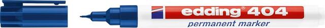 Permanentný popisovač edding 404 Vyhotovenie: Vymeniteľná guľatá špička. Rýchloschnúci, permanentný atrament bez zápachu, neobsahuje toluén/xylen, odolný proti oderu a vodoodolný a svetlostály. Použitie: Na popisovanie takmer všetkých materiálov, dokonca aj kovu, skla a plastu. 404 S plastovou stopkou. Výrobca: edding Aktiengesellschaft, An der Feldmark 9B, 31515 Wunstorf, DE, +4950311500, info@edding.com