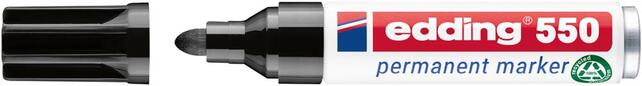 Permanentný popisovač edding 550 Vyhotovenie: Vymeniteľná guľatá špička. Rýchloschnúci, permanentný atrament bez zápachu, neobsahuje toluén/xylen, odolný proti oderu a vodoodolný a svetlostály. Použitie: Na popisovanie takmer všetkých materiálov, dokonca aj kovu, skla a plastu. 550 S hliníkovou stopkou (100% recyklovaný hliník), doplniteľný. Výrobca: edding Aktiengesellschaft, An der Feldmark 9B, 31515 Wunstorf, DE, +4950311500, info@edding.com