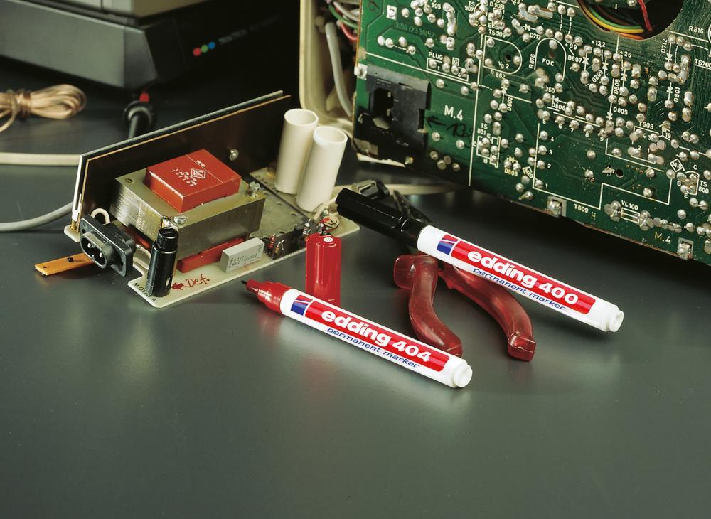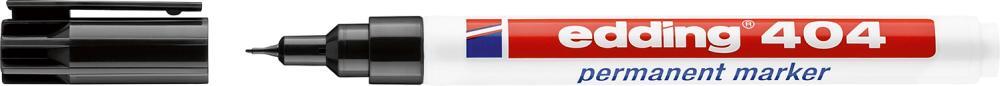Permanentný popisovač edding 404 Vyhotovenie: Vymeniteľná guľatá špička. Rýchloschnúci, permanentný atrament bez zápachu, neobsahuje toluén/xylen, odolný proti oderu a vodoodolný a svetlostály. Použitie: Na popisovanie takmer všetkých materiálov, dokonca aj kovu, skla a plastu. 404 S plastovou stopkou. Výrobca: edding Aktiengesellschaft, An der Feldmark 9B, 31515 Wunstorf, DE, +4950311500, info@edding.com