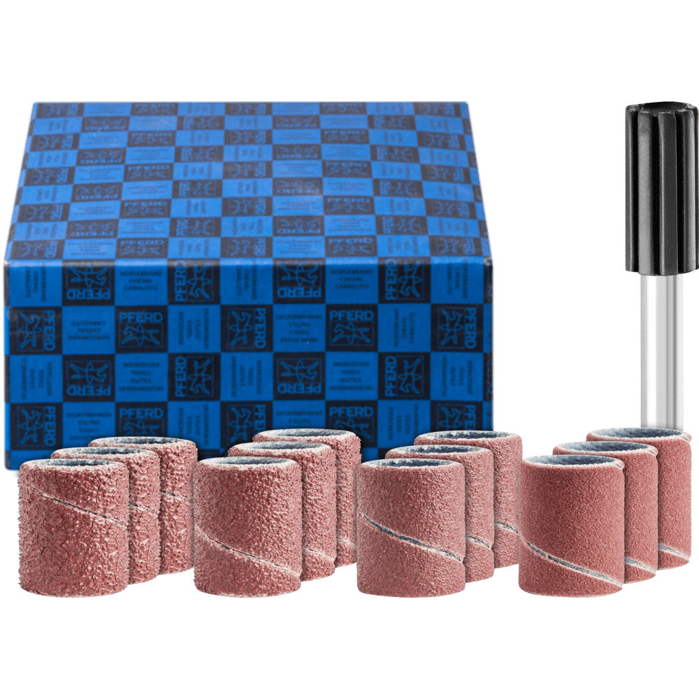 PFERD TOOLS ponúka široký výber abrazívnych nástrojov s povrchovou úpravou pre prácu na rôznych geometriách a materiáloch obrobkov. Tieto nástroje sa skladajú z podkladu, spojiva podkladu a spojiva pre abrazívne zrno, aby sa naňho prichytilo. V závislosti od veľkosti zrna môžu abrazívne nástroje s povrchovou úpravou dosiahnuť vysokú rýchlosť odstraňovania materiálu alebo veľmi jemný povrchový finiš. Dostupné podkladové materiály sa líšia vlastnosťami, ako sú pevnosť v ťahu, flexibilita a opotrebovateľnosť. S vhodným podkladom je brúsiaci nástroj prispôsobený požiadavkám zamýšľanej aplikácie: papier sa používa v drevárskom priemysle a v obchode, napr. medzi stolármi, maliarmi a dekoratérmi, tkanina sa prevažne používa na kovovýrobu a vulkanizovaná vlákna sú veľmi odolné voči opotrebeniu a používajú sa v rôznych hrúbkach prevažne na výrobu vláknitých diskov. Sada obsahuje valcové abrazívne špirálové pásy vhodné pre výber rôznych aplikácií, navrhnuté na univerzálne použitie pri hrubom až jemnom brúsení, ako aj vhodný gumový držiak bubna.