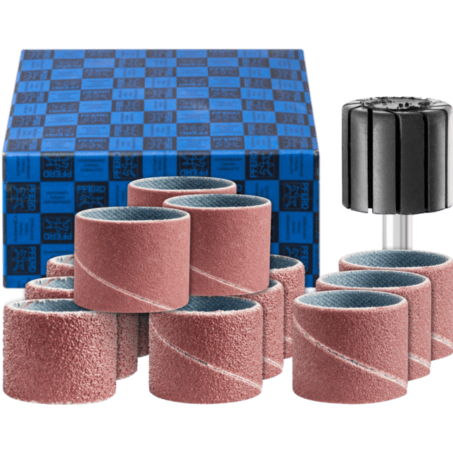 PFERD TOOLS ponúka široký výber abrazívnych nástrojov s povrchovou úpravou na prácu s rôznymi geometriami a materiálmi obrobkov. Tieto nástroje sa skladajú z podkladu, spojiva podkladu a spojiva na povrchovú úpravu, aby sa abrazívne zrno mohlo prichytiť. V závislosti od veľkosti zrna môžu abrazívne nástroje dosiahnuť vysokú rýchlosť odstraňovania materiálu alebo veľmi jemný povrchový finiš. Dostupné podkladové materiály sa líšia vlastnosťami, ako sú pevnosť v ťahu, flexibilita a opotrebovateľnosť. S vhodným podkladom je brúsiaci nástroj prispôsobený požiadavkám zamýšľanej aplikácie: papier sa používa v drevárskom priemysle a v obchode, napr. medzi stolármi, maliarmi a dekoratérmi, tkanina sa prevažne používa na prácu s kovmi a vulkanizovaná vlákna sú veľmi odolné voči opotrebeniu a používajú sa v rôznych hrúbkach prevažne na výrobu vláknitých diskov. Sada obsahuje valcové abrazívne špirálové pásy vhodné na výber rôznych aplikácií, navrhnuté na univerzálne použitie pri hrubom až jemnom brúsení, ako aj vhodný gumový držiak bubna.