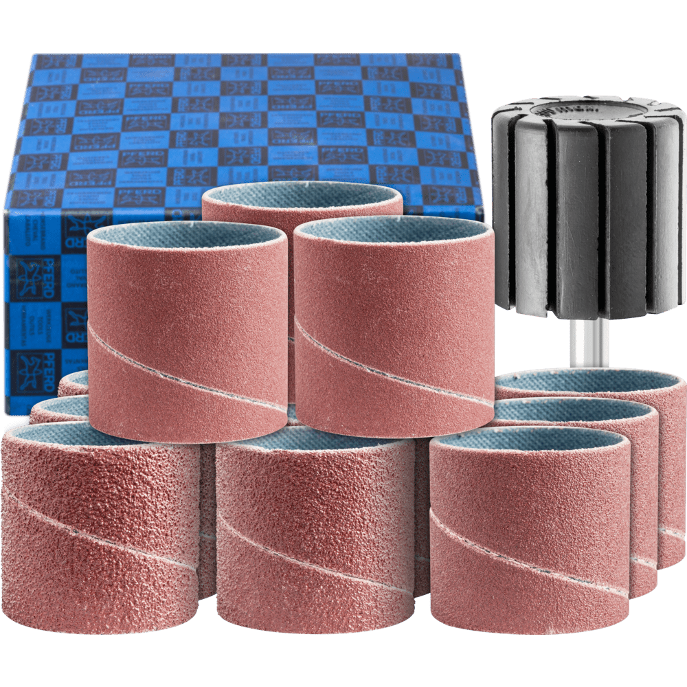 PFERD TOOLS ponúka široký výber abrazívnych nástrojov s povrchovou úpravou na prácu s rôznymi geometriami a materiálmi obrobkov. Tieto nástroje sa skladajú z podkladu, väzby podkladu a väzby povlaku, na ktorú sa abrazívne zrnko prichytí. V závislosti od veľkosti zrna môžu abrazívne nástroje dosiahnuť vysokú rýchlosť odstraňovania materiálu alebo veľmi jemný povrchový finish. Dostupné podkladové materiály sa líšia vlastnosťami, ako sú pevnosť v ťahu, flexibilita a opotrebenie. S vhodným podkladom je brúsiaci nástroj prispôsobený požiadavkám zamýšľanej aplikácie: papier sa používa v drevárskom priemysle a v obchode, napr. medzi stolármi, maliarmi a dekoratérmi, tkanina sa prevažne používa na prácu s kovmi a vulkanizovaná vlákna sú veľmi odolné voči opotrebeniu a používajú sa v rôznych hrúbkach prevažne na výrobu vláknitých diskov. Sada obsahuje valcové abrazívne špirálové pásy vhodné na výber rôznych aplikácií, navrhnuté na univerzálne použitie pri hrubom až jemnom brúsení, ako aj vhodný gumový držiak bubna.