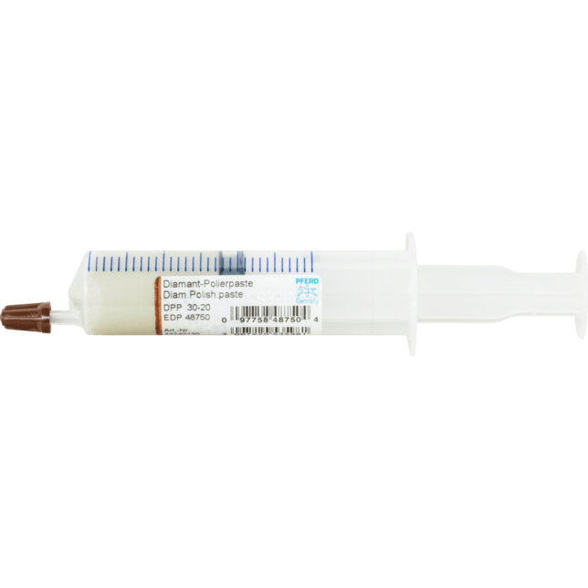 Diamantové leštiace pasty zaručujú rýchlu a efektívnu prácu, najmä pri výrobe nástrojov a foriem. Diamantové leštiace pasty sa používajú na spracovanie veľmi tvrdých materiálov, napr. karbidu wolfrámu a kalených oceľí. Používajú sa v kombinácii s plsťovými leštiacimi kužeľmi alebo kolesami. Diamantové leštiace pasty je možné riediť a rozpúšťať vo vode a alkohole. Veľkosť zrna podľa ISO 6344 = P 500