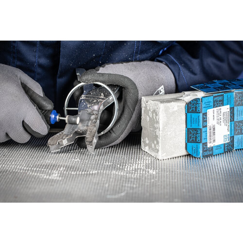Okrem použitia s plstenými nástrojmi sa leštiace pasty používajú aj v kombinácii s látkovými krúžkami na predleštenie a leštenie s vysokým leskom. Ak je cieľom dosiahnuť veľmi hladké povrchové úpravy, použite niekoľko alebo dokonca všetky varianty po sebe. Tyčinky leštiacej pasty sú k dispozícii v malom balení a vo veľkom balení. STEELOX je vhodný na hrubé predleštenie s sisalovou látkou (ST) a predleštenie s tvrdou látkou (TH).