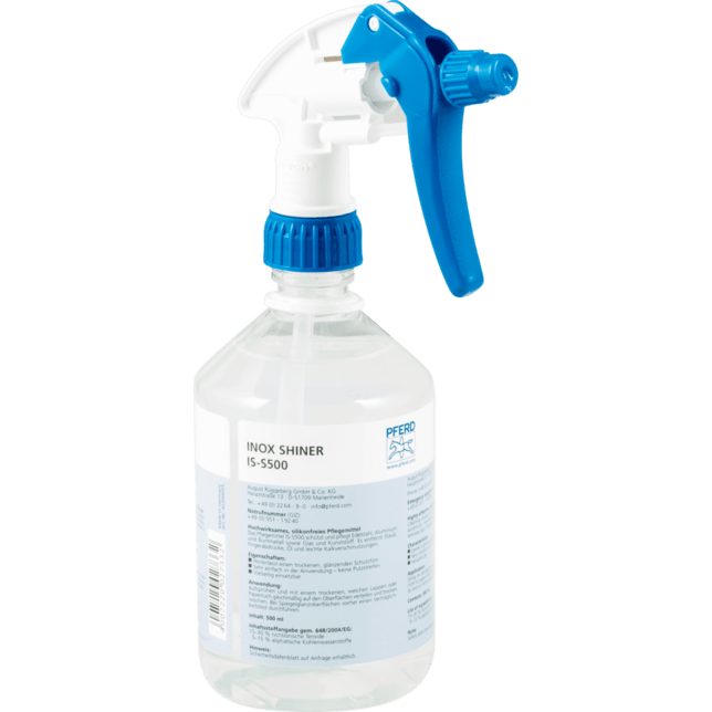 Veľmi účinné čistiace a údržbové produkty môžu byť použité na rôzne typy komponentov. Údržbový produkt na ochranu a starostlivosť o nerezovú oceľ (INOX), hliník, neželezné kovy, sklo a plast. Odstraňuje prach, odtlačky prstov, olej a ľahké usadeniny.